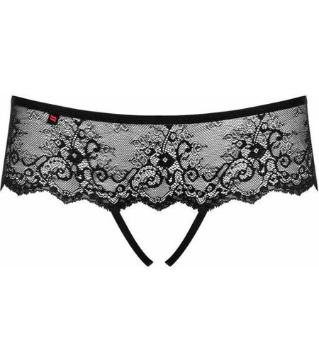 Ce splendide Tanga Ouvert Merossa noir de la marque de lingerie sexy Obsessive, est un composé de sublime dentelle noire transparente. Deux petites ouvertures sur l'avant et l'arrière du tanga viendront donner une touche de sensualité à votre tenue. Votre partenaire sera ravi de voir ce délicieux tanga sur vous, vos parties intimes seront à moitié et vont très vite lui suggérer de nombreuses idées coquines ! La composition est de 90% Polyamide et 10% Elasthanne. Lavable en Machine. Tailles S/M, L/XL. ...