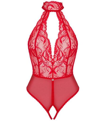 Je participe à votre jeu de séduction. Je suis votre Body Ouvert Dagmarie Rouge de la marque Obsessive ! Intense et passionné, je suis votre allié idéal pour charmer votre partenaire en un seul regard avec ma couleur d'un rouge des plus captivants. Mon style ras-du-cou avec lanière à nouer affine votre silhouette et laisse votre dos exposé tandis que ma sublime dentelle florale joue la carte de la tentation avec son érotique transparence et son décolleté ravageur. Mon bas opaque rouge se fait un plaisir de flirter avec la dentelle, jouant sur le contraste pour titiller encore davantage votre partenaire. Enfin, je pimente votre jeu sensuel avec une ouverture à l'entrejambe qui dévoilera bien des secrets... Composition : 90% Polyamide, 10% Élasthanne ...
