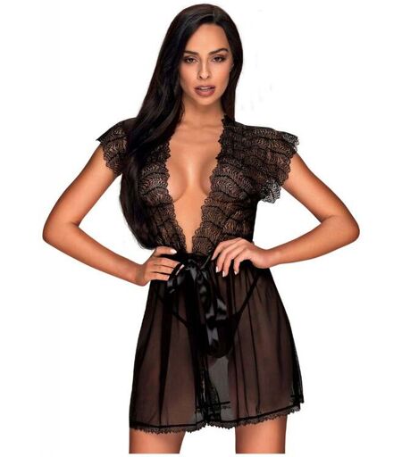 Ajoutez une pointe de mystère à votre lingerie sexy avec ce Déshabillé Romanesa Noir de la marque Obsessive ! Ce déshabillé entièrement transparent saura mettre l'eau à la bouche de votre partenaire au premier regard ! Sa partie supérieure avant en dentelle ouvragée d'un motif floral décorera merveilleusement votre poitrine dans un style des plus élégants tandis que la maille transparente avec bordures ornées de dentelle fine révélera coquettement vos sous-vêtements. Une ceinture à nouer noire satinée des plus chics s'ajoutera au déshabillé pour vous permettre d'ajuster votre lingerie selon vos désirs. Composition : 94% Polyamide, 6% Élasthanne Tailles S/M, L/XL. ...