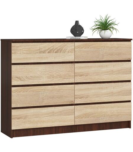 Akord - Commode K140 Wengé 138 cm 8 tiroirs façade Chêne Sonoma 138x40x99 cm