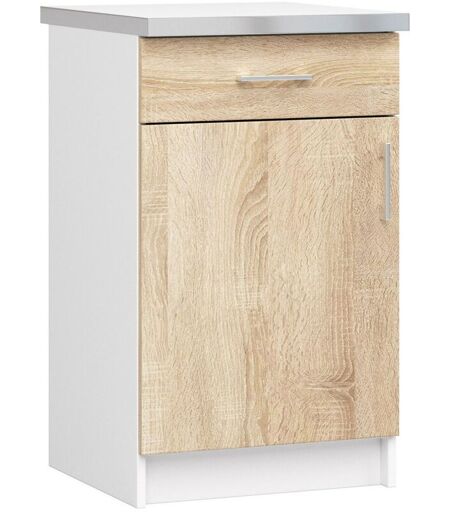 Armoires de cuisine basse Akord S50 lima Blanc 50 cm 1 porte 1 tiroir façade Chêne Sonoma 2 étagères 50x44,5x82 cm