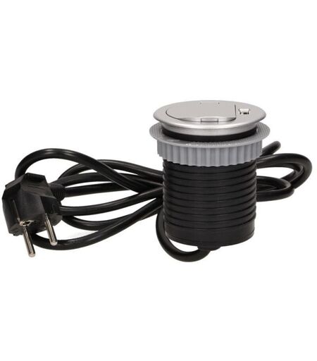 Caractéristiques Prise de courant 250 V CA/16 A avec terre et chargeur USB, dans un boîtier escamotable. L'appareil est conçu pour être installé sur un bureau, un plan de travail ou une table. Il dispose d'un cache supplémentaire protégeant la prise de courant et le port de chargement USB, ainsi que d'un câble de 1,8 m. Paramètres techniques Alimentation : 230 V CA Nombre de prises : 1 x 16 A, 250 V CA Sortie du chargeur USB : 5 V CC/2,1 A Charge maximale : 3 680 W Indice de protection : IP20 Longueur du câble : 1,8 m (OWY 3 x 1,5 mm²) Couleurs disponibles : argent Dimensions : 70 x 85 mm (diamètre/profondeur) Dimensions du trou de montage : 60 x 75 mm (diamètre/profondeur) ...