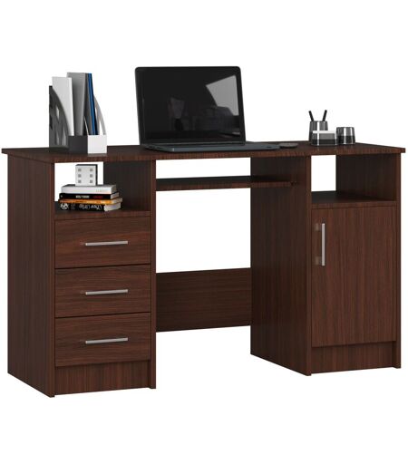 Akord - Bureau d'ordinateur ana Wengé 124 cm 1 porte 3 tiroirs façade Wengé 5 étagères 124x52x74 cm