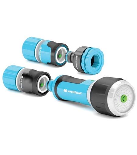 Caractéristiques : ergonomic sprinkler with non-gradual water flow regulation legible markings ease the choice of suitable type of water stream which is available from a strong jet and delicate mist to a heavy or light shower ? SAFETOUCH? system provides a reliable grip and comfort of use, and also protects the product against accidental damages Spécifications : inclus: ?? hose quick connector - stop: 1/2" ?? hose quick connector - water flow: 1/2" ?? connector with female thread: 1/2" , 3/4" , 1" ...