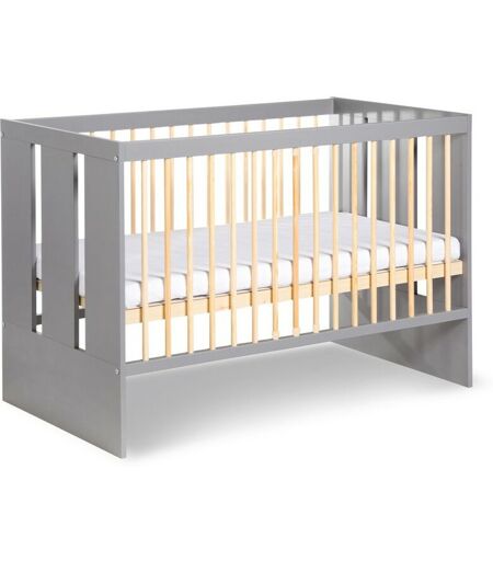 Monmobilierdesign - pauline Lit bébé enfant à barreaux avec sommier réglable 120x60 cm Gris / Bois