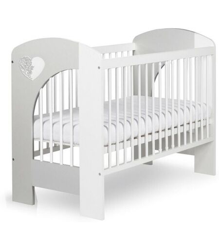 Ac-deco - Lit pour bébé Nel Heart 3 hauteurs réglables - Blanc avec motif coeur décoratif- 120 x 60 cm - Livraison gratuite