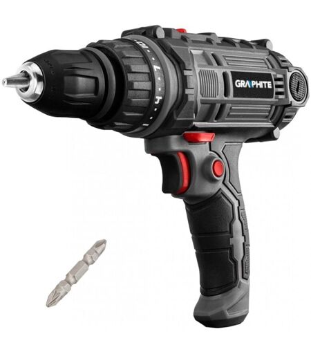 Perceuse-visseuse filaire de 300 W, mandrin amovible de 10 mm et coffret. La 58G793 de GRAPHITE est une perceuse-visseuse filaire à deux vitesses de 300 W et de 0 à 1600 tr/min. Fiable, elle est idéale pour visser et percer des trous dans le bois, le métal, la céramique et le plastique. Elle dispose d'une rotation inverse et d'un contrôle du couple (1 à 22 µs pour le perçage). Elle est également équipée d'un mandrin de 10 mm. Une douille hexagonale de 1/4" est également présente en dessous pour l'utilisation d'accessoires. Sa conception ergonomique, son faible poids et son cordon d'alimentation de 6 mètres facilitent le travail dans les endroits difficiles d'accès. L'interrupteur de verrouillage permet un fonctionnement continu à vitesse constante. La perceuse tient confortablement dans la main grâce à sa poignée antidérapante. Elle est livrée avec un embout double et un étui de rangement pratique. La conformité aux normes européennes est garantie par le certificat CE. Longueur : 35,0 ...