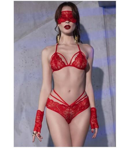 Chilirose Ensemble 4 Pièces CR4608 Dentelle Rouge
