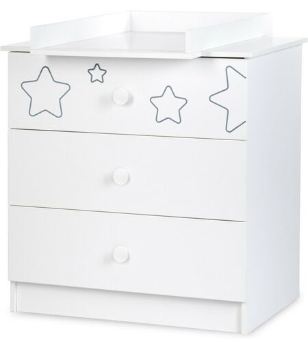 Klups - tino Commode enfant 3 tiroirs motifs étoiles + plan à langer amovible Blanc