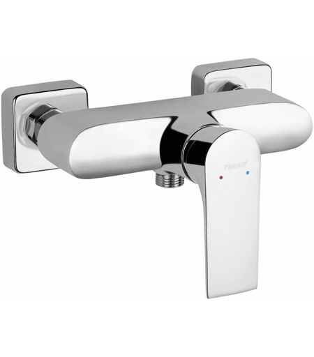 ALGEO SQUARE - ROBINET MITIGEUR MURAL DE DOUCHE. La série Algeo Square se décline en différents modèles de mitigeurs pour équiper la salle de bain (baignoire, vasque, etc..). Les robinets et mitigeurs de la marque FERRO bénéficient d'une fabrication de qualité supérieure garantie 5 ans. CARACTÉRISTIQUES: Marque : FERRO Mitigeur mural de douche Corps en laiton chromé Levier de commande chromé Cartouche céramique Sortie douche G 1/2 (livré sans douchette, ni flexible de douche) Écartement des connexions excentriques G 1/2 150 ± 20 mm Pression max. : 1.0 MPa Température max. : 90° Fixations et joints inclus Norme Européenne : EN 817-2008 Largeur : 21 cm Profondeur : 14 cm Poids hors emballage : 1,28 kg Garantie fabricant : 5 ans INFOS LIVRAISON : Colis suivi par email et par SMS. À noter : pas de livraison en Corse ou sur les îles. À réception, contrôlez attentivement l'état de l'emballage ET SON CONTENU en présence du livreur. En cas de problème (colis abîmé, produit endommagé, etc ...