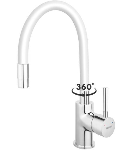 Ferro - zumba Robinet mitigeur de cuisine bec flexible Blanc