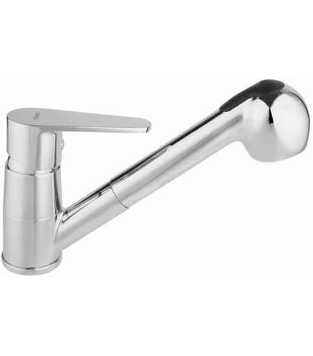 Robinet d'évier sur pied avec bec extractible régulateur céramique installation monotrou régulateur de débit M24x1 bec orientable raccords flexibles G3/8 - M10x1 chromé ...