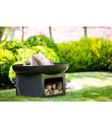 Farmcook - Brasero de jardin fatapera avec range bois en acier-Ø 70cm-Acier naturel-60 -70 - 80---Acier naturel