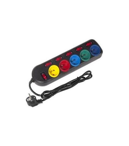 Maclean MCE204M multiprise 1,5 m 5 prises CA Intérieur Noir, Multicolore