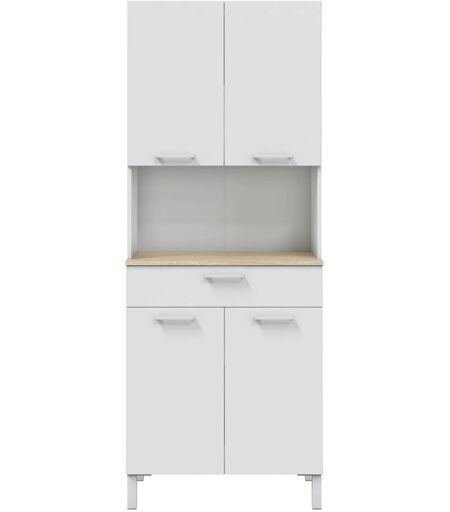 PEGANE Buffet meuble cuisine 4 portes + tiroir coloris blanc artic / chêne canadien - Hauteur 186 cm x Longueur 72 cm x Profondeur 40 cm