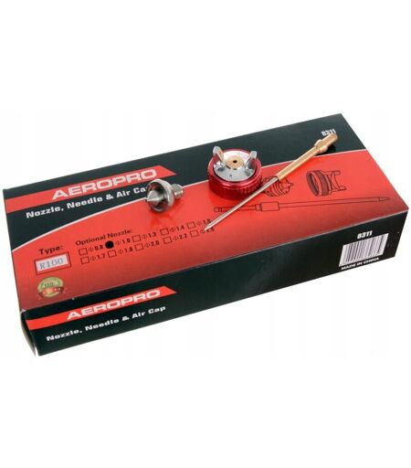 Düse zur Verwendung mit AEROPRO R100 Spritzpistolen Düsengroße: 1.0 mm Technologies: LVMP Matériau : Métal / Messing / Edelstahl Ensemble complet : Düse, Nadel, Kappe ...