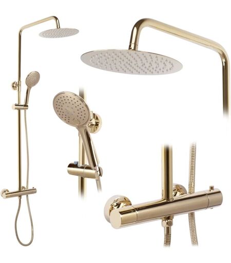 Kit de douche conçu avec le confort et la fonctionnalité à l'esprit. Grâce à une phase de production spéciale. l'ensemble garantit un maximum de sécurité et de confort au quotidien. La conception unique et la haute qualité des matériaux utilisés garantissent durabilité et fiabilité pendant de nombreuses années. Nous vous invitons à consulter notre offre. Matériel d’exécution: laiton Finition: or clair Hauteur: 83,5 cm Tete thermostatique: non Taille de la douche de tete: 25 x 25 cm Longueur du tuyau: 150 cm Raccordement de douche: ½ pouce Espacement de montage: 15 cm Garantie: 24 mois ...
