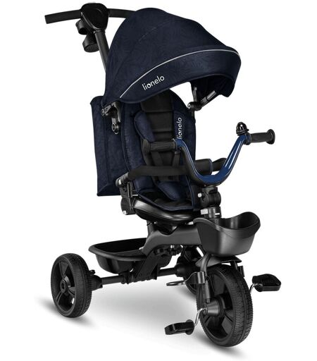 V?hicule universel Lionelo Kori est une combinaison d'un v?lo de promenade avec un v?lo ? trois roues classique. Gr?ce ? l'option de changement du positionnement du si?ge de 180?, l'enfant peut voyager dans le sens de la route et dos ? la route. Le v?hicule peut ?tre dirig? ? l'aide d'une poign?e r?glable, en assurant en m?me temps la possibilit? de p?daler ? l'enfant. Apr?s que le petit utilisateur atteigne la taille appropri?e, il est possible de la d?monter, tout comme le repose-pieds et le garde-corps, en donnant le r?le de chauffeur entre les mains de l'enfant. Construction l?g?re et haute agilit? La construction de Lionelo Kori est bas?e sur un cadre l?ger et d?pourvu de joints soud?s fabriqu? ? partir d'un alliage de magn?sium de haute qualit?. De grandes roues du v?hicule ont ?t? ?quip?s de grandes pneus sans chambres ? air ? partir d'un mat?riau PU de haute qualit?. Gr?ce ? une bande de roulement sp?cialement con?ue, le v?hicule dispose d'une haute adh?rence. Le v?hicule a ?t? ?quip? d'?l?ments r?tror?fl?chissants qui am?liorent sa visibilit? sur la route. Lionelo Kori a fait l'objet d'une v?rification ? plusieurs ?tapes et d'essais dans le laboratoire ind?pendant de certification Intertek. Il r?pond aux exigences de la norme de s?curit? europ?enne EN 71. Confort et ensemble riche d'accessoires Le v?hicule a ?t? ?quip? d'un auvent amovible ? 3 niveaux avec un filet a?r? int?gr? et d'un r?glage du dossier ? 3 niveaux. Le kit du v?lo Kori comprend deux paniers pour les accessoires n?cessaires, ainsi qu'un sac confortable ? fermeture ? glissi?re. De plus, ? la poign?e ? l'aide de laquelle le parent dirige le v?hicule, il est possible de joindre le porte-gobelet ou le porte-biberon fourni avec le kit. ...