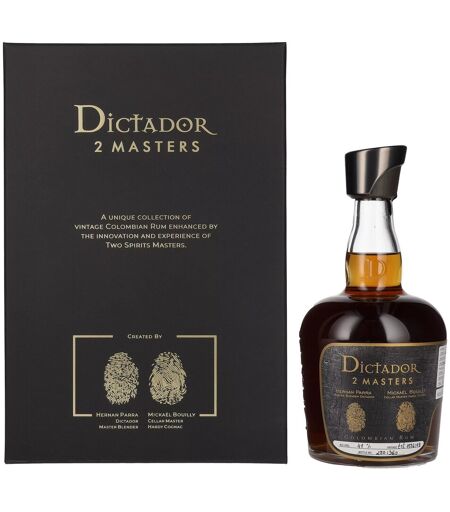 Le Dictador 2 MASTERS 1978 39 Years Old Hardy Finish est un rhum exceptionnel qui réunit dans chaque bouteille la maîtrise de deux maîtres renommés. Ce rhum exclusif a été créé par Hernan Parra, maître-assembleur de Dictador, et Mickaël Bouilly, maît Couleur : ambre profond avec des reflets dorés. Nez : Arômes complexes de fruits mûrs comme la prune et la datte, accompagnés de notes épicées de cannelle et de vanille, qui se marient à une subtile note de chêne. Goût : Corsé et riche, avec des no ...