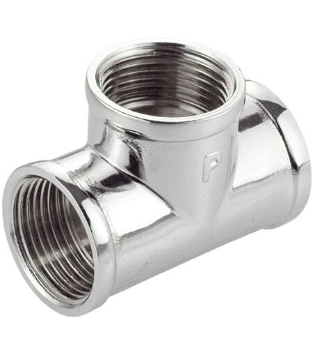 Des raccords de tuyauterie filetés BSP en laiton chromé sont utilisés pour raccorder les tuyaux des systèmes d'eau et de chauffage. - Type: tee; - Taille de filetage: 1/2" BSP Femelle x Femelle x Femelle; - Matériau: laiton chromé; - Max. température de travail: +100C; - Max. pression de travail: 1,0MPa (10 bars). ...