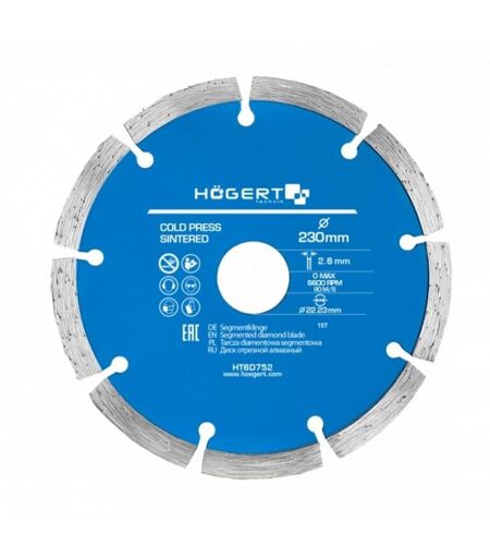 Disque à tronçonner diamanté Hogert HT6D752; 230 mm Code EAN : 5902801319983 Marque : Hogert Poids du produit (kg) : 0.6464 ...