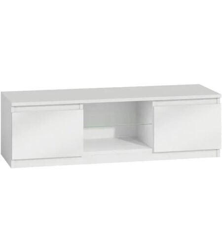 Tivoli - Meuble Tv Style Moderne - 140x40x36cm - 2 Niches + 2 Portes - Rangement Matériel Télé/Audio - Blanc Brillant