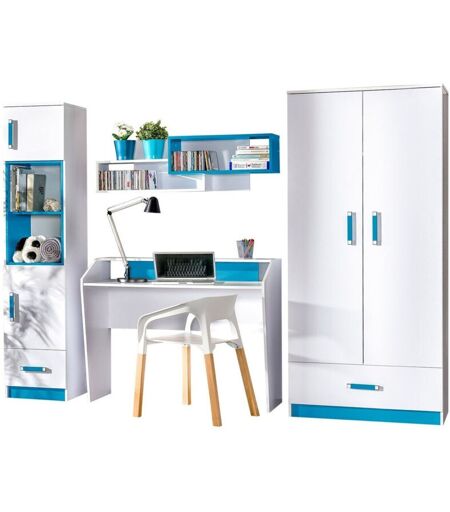 MOBILIER1 Chambre enfant complète Sorviru 106, Blanc + Turquoise