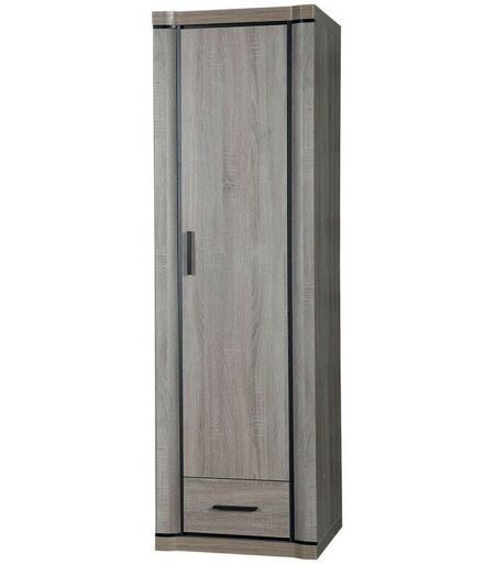 Armoire Lorelie 117, Truffe chêne, 192x58x58cm, Portes d'armoire: Avec des charnières, Nombre d'étagères: 0 Caractéristiques Largeur: 58 cm Origine: Union européenne Portes d'armoire: Avec des charnières Miroir: Absent Hauteur: 192 cm Profondeur: 58 cm Poids: 61 kg Matière principale: Stratifié Nombre de tiroirs: 1 pcs. Pieds: Absent Poignées: Plastique Épaisseur bâti: 1.6 cm Épaisseur du panneau de façade: 1.6 cm Épaisseur de la plaque supérieure: 4.8 cm Autre(s) matière(s): MDF Autre(s) matière(s): ABS Le nombre de portes: 1 pcs. Couleur: Truffe chêne Código de producto: 170147 Bords protégés par de l'ABS Les bords des meubles sont recouverts d'une bande de finition - ce matériau en plastique résistant est généralement utilisé pour protéger les arêtes des meubles. Fabriqué dans l'Union Européenne ...