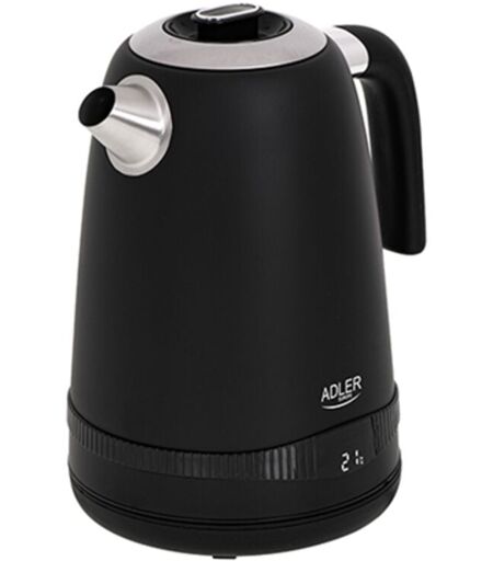 Bouilloire électrique Vintage Adler AD 1295B en acier inoxydable gris. Capacité de 1,7 litre, puissance 2200 watts, écran LCD, contrôle de température de 40 à 100 °C, filtre anti-calcaire, base rotative 360°, maintien au chaud 40 °C pendant 2 heures, et système de sécurité intégré. ...