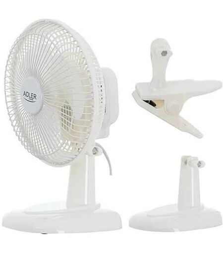 Adler Ventilateur - Blanc - 15 cm - 2 vitesses - Clip et base - Débit d'air 7 m3/min