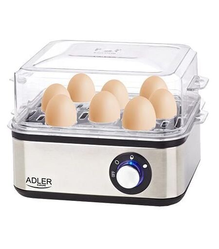 Adler AD 4486 cuiseur d'oeufs 8 oeufs 800 W Noir, Acier satin, Transparent