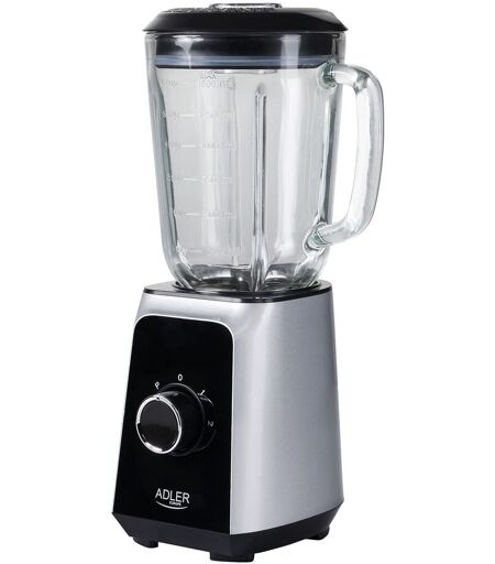 Blender Mixeur, Récipient en Verre de 1,5 Litre, 2 Vitesses+Fonction d'impulsion, 1000W, Argent, Adler, AD4076