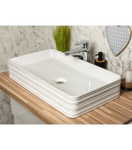 KERRA Vasque à poser rectangulaire en céramique LISA extérieur rainuré 67.5 x 37.5 x 12 cm