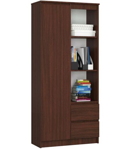 Akord - Bibliothèque de bureau R11 Wengé 80 cm 1 porte 2 tiroirs façade Wengé mat 7 étagères 80x35x180 cm