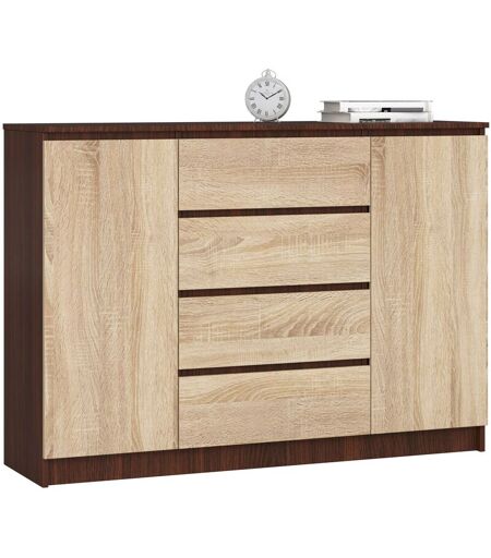 Akord - Commode K140 Wengé 138 cm 2 portes 4 tiroirs façade Chêne Sonoma 4 étagères 138x40x99 cm