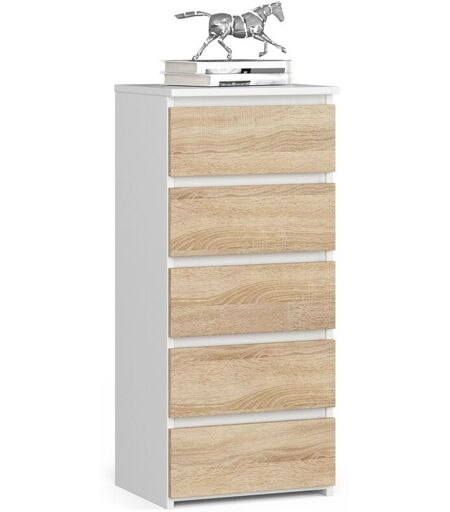 Akord - Commode CL5 Blanche 40 cm 5 tiroirs façade Chêne Sonoma 40x35x92 cm