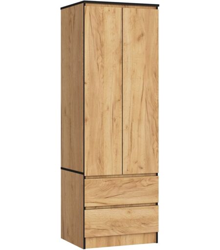 Akord - Armoire S60 Chêne Craft 60 cm 2 portes 2 tiroirs façade Chêne Craft 1 étagère 60x51x180 cm