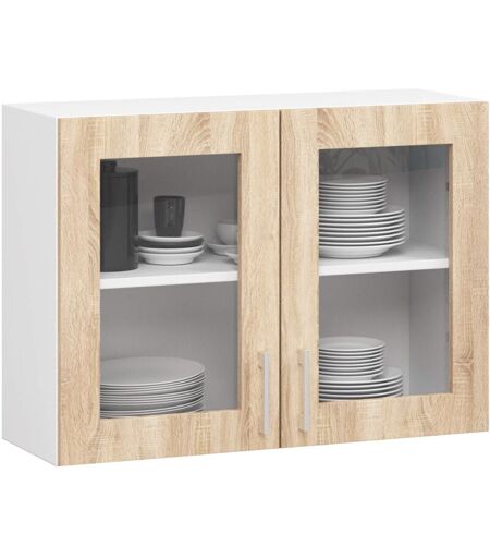 Akord - Vitrine de cuisine lima W80 D2 Blanche 80 cm 2 portes façade Chêne Sonoma 2 étagères 80x30,5x58 cm