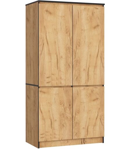 Akord - Armoire S90 Chêne Craft 90 cm 4 portes façade Chêne Craft 4 étagères 90x51x180 cm
