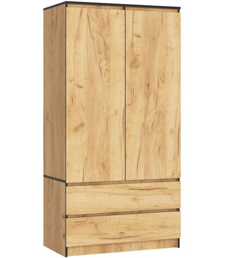 Akord - Armoire S90 Chêne Craft 90 cm 2 portes 2 tiroirs façade Chêne Craft 4 étagères 90x51x180 cm