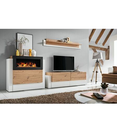 Ac-deco - Ensemble meuble tv mural et buffet cheminée Queens - l 290 x p 45 x h 150 cm - Blanc et beige - Livraison gratuite