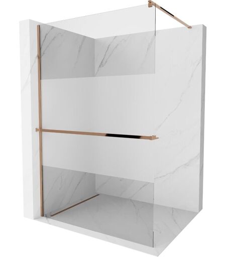 Mexen - Kioto+ paroi de douche avec étagère Walk-in 70 x 200 cm, transparent/givré, or rose - 800-070-121-60-35