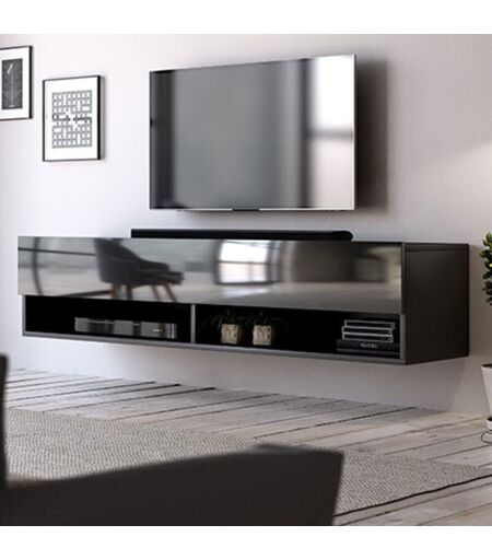 Vivaldi - Meuble tv suspendu 1 porte 140x32,8x31 cm noir - lesli