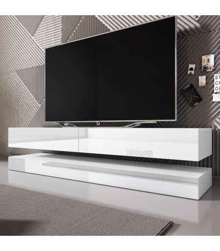 VIVALDI Meuble TV 2 tiroirs 140 cm blanc et blanc brillant - OCARZ
