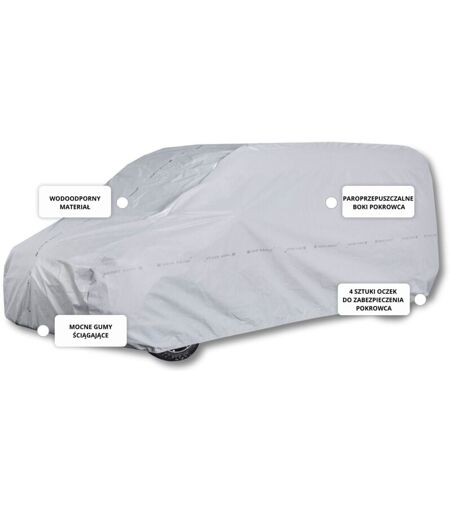 HOUSSE DE VOITURE PRACTIC La housse de voiture Practic de Nava Group est conçue pour protéger votre véhicule des facteurs externes nocifs. Fabriquée en polypropylène 3 couches durable et imperméable, résistante aux intempéries. Grâce aux propriétés spéciales du matériau, la housse est résistante à la moisissure et à l'abrasion, et sa structure respirante empêche l'humidité de s'accumuler à l'intérieur. Grâce à l'utilisation d'un filtre contre la lumière du soleil, nous garantissons une utilisation à long terme de la housse sans effet d'effritement du matériau. La couleur de la housse est grise, ce qui limite l'échauffement du matériau et de l'intérieur du véhicule. La housse garantit un stockage sûr du véhicule à l'extérieur comme à l'intérieur. La housse Practic 3 couches est la solution parfaite pour ceux qui recherchent une protection solide pour leur véhicule à un prix avantageux. Grâce à sa durabilité, ses côtés perméables à la vapeur et son dessus imperméable, il offre une ...