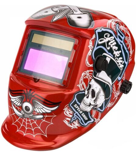 PowerMat Masque de soudure professionnel auto-obscurcissant échelon 9/13 din Rouge Lucky's speed shop