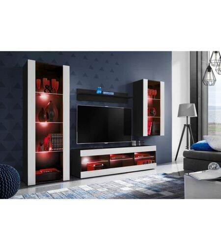 Meuble Tv Tivoli Set Medio Komodee - Led Rgb - Blanc Mat & Noir - Façades En Mat - L 195cm X H 159cm X P35cm