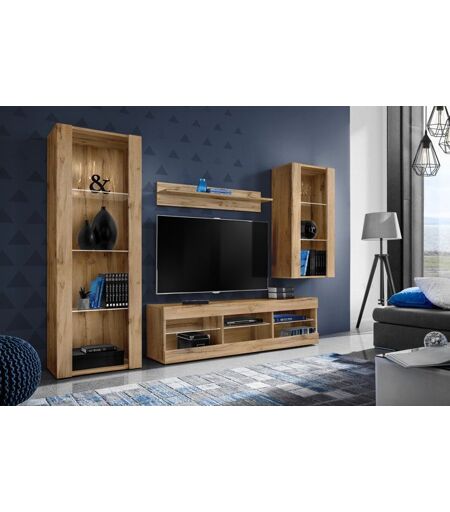 Meuble Tv Tivoli Set Medio Komodee - Sans Led - Bois Naturel Mat & Bois Naturel - L 195cm X H 159cm X P35cm