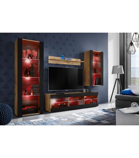 Komodee Ensemble de Meubles Tivoli Medio, Wotan/Noir, Largeur 245cm x Hauteur 159cm x Profondeur 35cm, LED RGB, 3 étagères, pour Salon, Chambre,