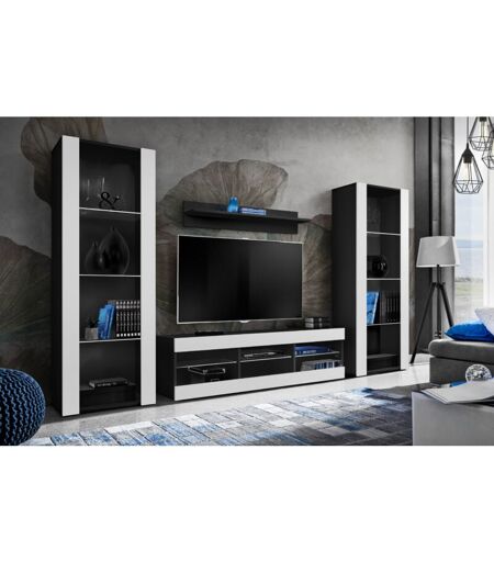 Komodee - Ensemble de Meubles Tivoli Grande, Noir/Blanc, Largeur 250cm x Hauteur 159cm x Profondeur 35cm, sans led, 3 étagères, pour Salon, Chambre,
